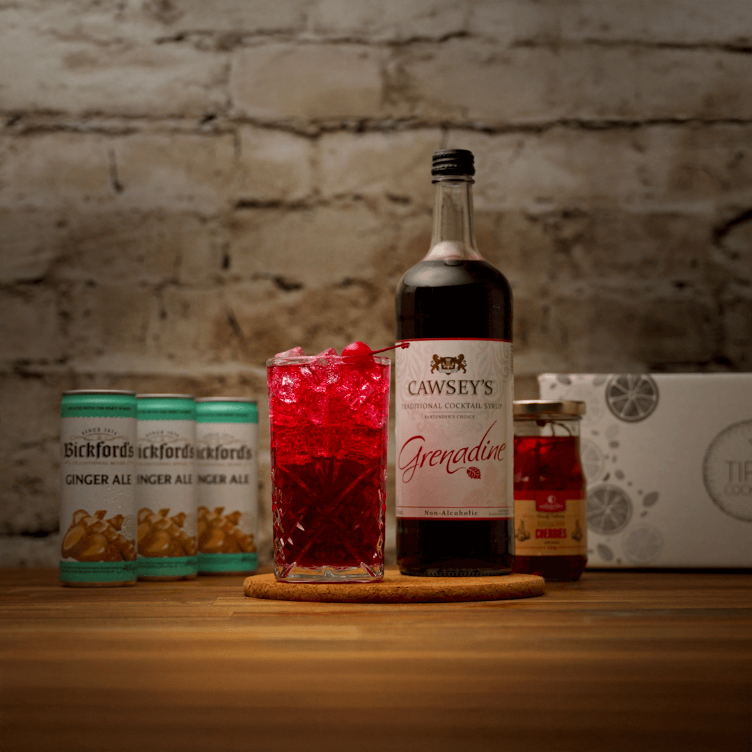 video shows the recipe and the making of a Shirley Temple Mocktail. Start by filling glass with ice. Adding 15ml Grenadine, good squeeze of lime and topping drink with approx 140ml of ginger ale. Stir the drink and top with a maraschino cherry, or two. Enjoy!